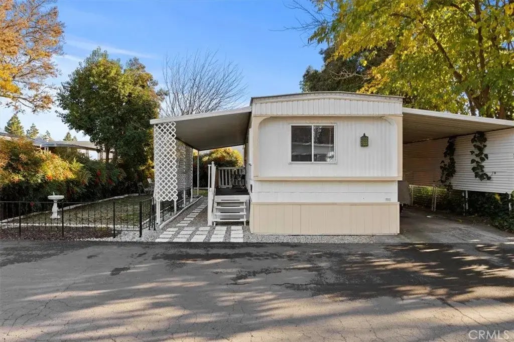 Welcome Home to this impeccably tidy, split floorplan, 2bed / 2 bath, and a private yard manufactured home, in the Mountain View Mobile Home Community! Pulling up you will instantly notice the pride of ownership. Fenced yard and exterior are immaculate. Private X-large, paved driveway and covered carport offer plenty of room for your vehicles, bicycles or even special projects; plus, there are 2 sheds for ample storage! The exterior areas around the home have been landscaped with rock and stepping stones. Inside you will be welcomed by a cozy family room, dinning area, and open kitchen. Beautiful craftsman-style wood beams catch the eye along with built in cabinetry and buffet in the appointed dinning area. Dual-pane windows throughout keep the home temperate and insulated. With a split floorplan, and indoor laundry room, each occupant will enjoy their own bathroom, closets, entries and a sense of privacy. Truly this home has just the right flow and amenities. With a newly sealed roof, you are protected rain or shine. The community offers wide-open streets, set back from the main thoroughfare of the Esplanade and a beautiful, recently remodeled clubhouse and pristine gated pool! Close to all kinds of shopping options, gas stations, freeway access, and public transportation... Amazing price with all these gems; call to set up your showing today!!
