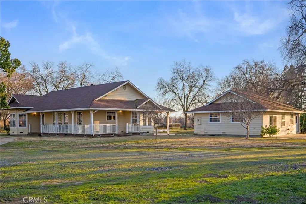 Tucked away at the end of a cul-de-sac, surrounded by lush orchards, this beautiful country home offers privacy, serenity, and breathtaking sunsets. Set on 6 acres, the property features the Durham Mutual Ditch, a year-round stream that adds to its charm. From the moment you arrive, youll fall in love with the inviting porch, perfect for relaxing and taking in the tranquil surroundings. Inside the 3-bedroom, 2-bathroom main home, youll find a spacious living room with a cozy free-standing stove and rock surround, creating a warm and welcoming atmosphere. The kitchen is designed for gathering, featuring bar-top seating on the peninsula island, a double oven, an electric cooktop, and a brand-new dishwasher. The adjacent dining area provides plenty of room for family meals and entertaining. On one side of the home, youll find two generously sized guest bedrooms, a guest bathroom with a double sink vanity, and a large laundry room with backyard access. The primary suite is a peaceful retreat, offering French doors leading to a private deck, a walk-in closet, and an en-suite bathroom with a double sink vanity and large shower. A detached unit behind the home offers endless possibilitiesit could be a guest house, home office, game room, or even converted into a 3-car garage. Other features include a whole house fan, great fruit trees and a small barn! The 6-acre property provides ample space for animals, gardens, recreational toys, and moreall while embracing the beauty of country living. If youre looking for privacy, space, and the charm of Durham, this is the perfect place to c