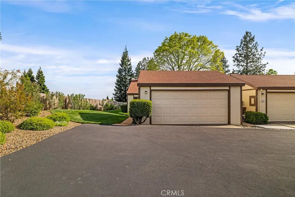 Welcome to the Stoneridge Townhouses in Paradise. Pride in ownership describes this community. Wonderful Pool and Clubhouse to entertain family and friends. This end unit offers nice privacy as only one wall is shared. The front courtyard welcomes you into the home. The living room has vaulted ceilings, newer carpet, fireplace with built in cabinets and shelves on either side. The living room opens to the dining room with a slider to the front courtyard. The kitchen overlooks the dining room with stainless sink, stainless Whirlpool refrigerator, microwave, updated electric oven/range, skylight and large walk-in pantry. Down the hallway is the spacious laundry room with plenty of cabinets, guest bathroom with solid surface vanity, 10X10 tiled floors, skylight, updated light fixture and a tub/shower combination. The primary bedroom has a private slider to the fenced back patio and walk in closet. The primary bath offers soldi surface vanity and a step-in shower. The guest bedroom also has its own slider to the back patio. The back patio has some wonderful mature Japanese Maples and since it's an end unit very private. The home also offers an oversized detached two car garage. New thermostat 2025. New Hot Water Heater 2025. All carpeted rooms were done in 2019. Added insulation to R-38 in 2019. The interior of the home was also painted in 2019. Updated Central furnace. This home has been well cared for and is ready for a new owner.