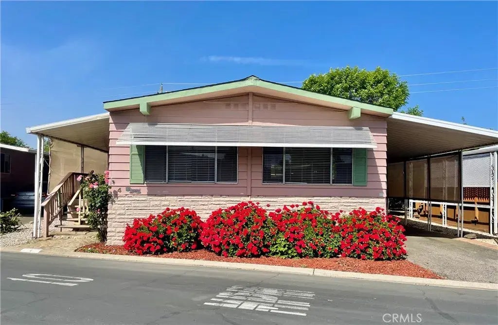 Charming manufactured home located in the peaceful 55+ community of Chico Mobile Country Club! Ideally situated on the edge of Chico, just minutes from Downtown Chico. This 2-bedroom, 2-bath home offers 1,440 square feet of comfortable living space. Newly painted offering ample space and comfort, featuring 2 generously sized bedrooms with a remodled master shower, each bedroom with its own private bathroom. Enjoy two separate living areas perfect for entertaining or relaxing, along with a versatile bonus room and a dedicated office just off the living room. Stay cozy year-round with central heat and air, plus the added charm and efficiency of a pellet stove. With this desirable layout and well maintaned interior, this home is move-in ready and full of possibilities. The kitchen offers abundant cabinetry and storage space, a gas stove, refrigerator, dishwasher, double sink basin and a range hoodmaking it ideal for everyday living and entertaining. Another added bonus is the wall of windows that fills the space with endless natural light, along with a covered front porch and a convenient storage shed. Residents also enjoy access to the community amenities including a pool, hot tub, gym, RV parking and much more! This community offers the ultimate convenience and leisure and essence of community living.