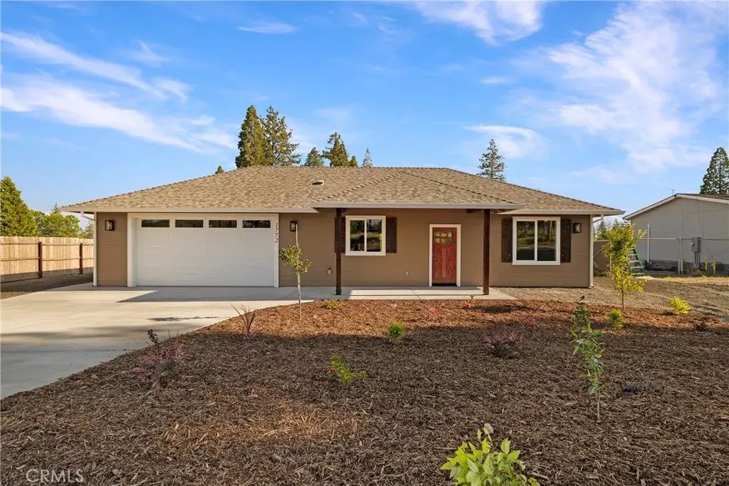 Fantastic Location for this stunning 2 bedroom, 2 bathroom home built by local Builder Frost Construction is now available for sale! Owned Solar 3.04 KW system and a .33 acre lot size. Boasting a generous 1,021 square feet of living space, this home features top-notch craftsmanship and modern amenities. Upon entering, you'll be greeted by a charming 96 square foot covered front porch with knotty pine tongue & groove ceiling, recessed lighting and a craftsman-style front door and custom shutters. Step inside to discover an open floor plan that seamlessly connects the living room, kitchen, and dining area. The kitchen is a chef's dream with granite countertops, stainless steel appliances, recessed LED and pendant lighting, Pantry and a stylish island for added convenience. The primary bedroom is a serene retreat with crown molding, a slider leading to the covered patio, and a well-appointed en-suite bathroom featuring granite counters and a step-in shower. The guest bedroom also offers crown molding and access to a sleek guest bathroom with granite countertops and a tub/shower combination. This home is equipped with an 8-panel owned solar system for energy efficiency and features gorgeous Vinyl Plank flooring throughout. Outside, you'll find a spacious 114 square foot covered patio with recessed lighting and a ceiling fan, perfect for outdoor entertaining. RV, Boat or Trailer Parking over 30 ft in length and 13 ft. wide. Fantastic Opportunity. Additionally, the oversized two-car garage, measuring 23'5" wide by 25'10" deep, includes a laundry area and plenty of space for a boa