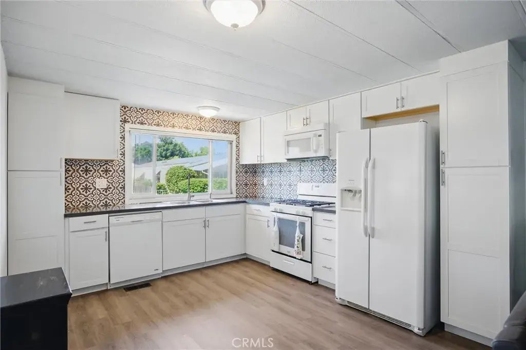 Welcome to this updated, move-in ready home located in Chicos highly desirable Coach House Mobile Estates, a 55+ community known for its affordability and amenities. This light-filled residence features an open floor plan with a beautifully remodeled kitchen showcasing classic white cabinetry, quartz countertops, and a stylish decorative backsplash. The interior has been freshly drywalled and painted, offering a clean, modern feel, while new vinyl laminate wood flooring adds warmth and durability throughout. Additional upgrades include resurfaced roofing, newer dual-pane windows, and central heating and air for year-round comfort. The spacious family room boasts a beamed vaulted ceiling and a 12 x 7 pop-out, providing the perfect space for dining or additional seating. The updated bathroom includes a new vanity, a tub, and a sleek shower surround. Outside, youll find a long carport accommodating two vehicles, a metal shed for extra storage, and patio for bbqing. Coach House Mobile Estates offers a welcoming community environment with access to a clubhouse, swimming pool, guest parking, and optional RV/storage parking. With space rent at just $650 per monthincluding water and garbagethis is one of the most economical living options in Chico. Dont miss your chance to own a private, stylish retreat in this sought-after community!
