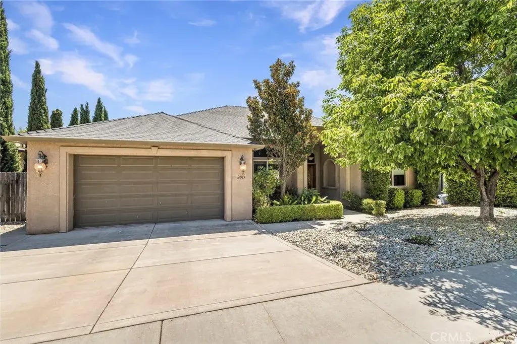Casual Elegance Awaits in Belvedere Heights! Experience the perfect blend of comfort and sophistication in this well kept South Chico home that was once the subdivision model. A charmingly landscaped walkway welcomes you to the front entrance, where a traditional foyer opens to soaring ceilings and an abundance of natural light, for flooring you'll find beautiful maplewood and carpet. You'll love the well designed kitchen with stainless steel appliances, gas cooktop, granite counters, well designed pantry, and an eating bar. The open floor plan offers a formal dining room as well as a spacious living area - an ideal space for gathering. Custom wood shutters on the oversized picture window allow you to control the ambiance while offering views of the lovely backyard and partially covered patio extended beyond its original size. Step outside to a backyard designed for both relaxation and productivity. Southern exposure ensures plenty of sunlight for the four raised garden beds (filled with the richest soil!), seventeen fruit-bearing trees, and four grapevines in the family orchard. Italian cypress trees line the back and east fence lines, providing privacy and a sense of seclusion. All landscaping is maintained with efficient drip irrigation. Inside, the split floor plan offers versatility and privacy. The primary bedroom features an ensuite bath with jetted tub, with an additional full bath and bedroom located nearby and two more bedrooms and another full bathroom are situated on the opposite side, offering versatility for the homeowner. An indoor laundry room with a laundr