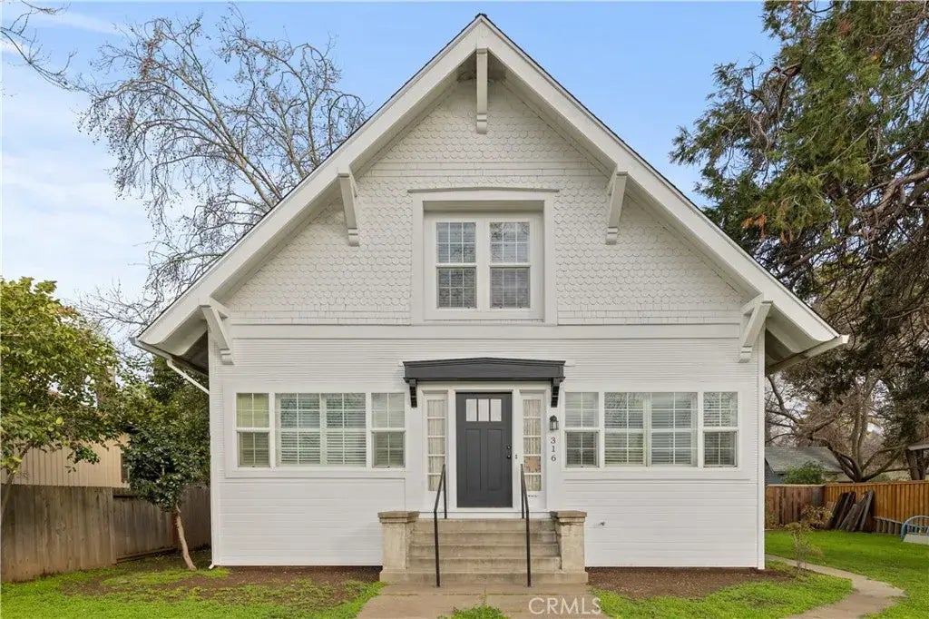 Back on the market and at an absolutely KILLER price!! Unique, charming, Victorian-style Chico home! Fantastic opportunity to own a piece of some of Chico's original homes or add to your rental portfolio! Across the street from Chico High School and just a short distance from Chico State and downtown Chico as well. This two story house underwent some remodeling earlier this year, such as new siding in the front, new shower tiling, new kitchen flooring and a new electric range and dishwasher. The primary bedroom is downstairs with its own bathroom and another full bath downstairs as well. There are 3 bedrooms upstairs with 1 full bathroom. The home has the original hardwood floors throughout and updated linoleum in the extra bath off the kitchen as well. There is a formal dining room area connected to the main entry/living room with a door to the staircase. There is ample space in the basement for all your storage needs. The back deck was updated with redwood and the front door has been replaced and painted! The siding that was replaced was freshly painted with the rest of the exterior, bringing a bit of life back in to this beautiful home. New carpet was installed in one of the upstairs bedrooms. The upstairs bathroom was remodeled within the last 2 years as well. The garage unit was converted to a beautiful ADU prior to current owner purchasing the property. The ADU unit has its own meter for PG & E and is 1 bed, 1 bath with a large living room area and a small kitchen all in approximately 800 sq. ft of living space! It has its own alleyway access as well with a gate for p