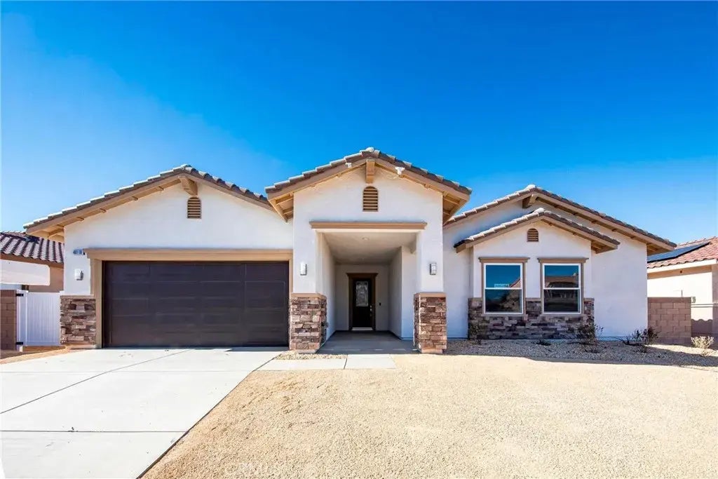 GORGEOUS BRAND NEW SINGLE STORY HOME in the Antelope Valley Country Club Area. Lovely Open Concept Floorplan. Lots of Natural Light. 10 foot Ceilings! Kitchen is a Chef's Dream with Lots of Cabinet and Counter Space. Craftsman Style Cabinets. Quartz Countertops. Huge Center Island with Breakfast Bar. 5 Burner, Dual Oven Stainless Range. Spacious Master Bedrooms with Closet as large as a small bedroom! Builtin in Closet. Master Bathroom with Dual Sinks, Quartz Countertops, Separate Tub and Shower. All Bathrooms have Quartz Countertops. Roomy Laundry Room with Utility Sink. Contemporary Finish including Plank Flooring in all Living areas, Bathrooms, Laundry and Hallways. Wide Baseboards. Attractive Light and Plumbing Fixtures. Large Under Roof Patio Cover. Low water Consumption Landscaping. Block Walls. No HOA Fees or Mello Roos. Several Country Club Memberships are available at reasonable costs. Don't miss this Great New Home. Seller will assist in buying down buyers interest rate so buyer will have a lower monthly payment!
