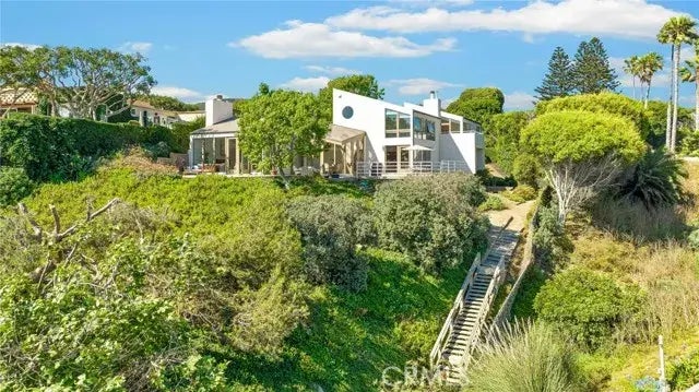 Spectacular oceanfront estate on private road w/ panoramic views of sand, surf, & sea in prime Malibu neighborhood. Contemporary architecture w/ walls of windows designed to bring amazing views into every room. Assessor shows 2787 sq ft plus there is an additional 497 sq ft studio not included in above square footage. Total usable space is approx. 3250+ sq ft. Step down from formal tiled entry to open living area w/ vaulted ceilings, recessed lighting, tiled fireplace w/ wide hearth, wall of windows, letting in the view, & French doors out to patio. Spiral staircase leads to loft, overlooking living room, perfect for use as home office, studio space, or playroom. Open kitchen has sleek wooden cabinets, tile counters, built-in appliances including double oven, open shelving, large central island w/ built-in wine rack, & breakfast bar seating. Kitchen also has a sunny breakfast nook, bordered by windows, & access to surrounding deck. Sunny solarium off the living area & kitchen space boasts tile floors, glass walls & ceilings, French doors out to patio, & could be utilized as formal dining area or additional living space set up to enjoy looking over the water. Main level bedroom, w/ wood floors, high wood beamed ceiling, & hillside view, w/ adjacent full bath, create perfect guest area or room for private home office. Upstairs are 3 additional bedrooms including 2 sizable bedrooms w/ high, vaulted ceilings, double closets, & windows designed to bring the outdoors in which share a full hall bath. Upstairs sunroom, designed to maximize the view, has built-in desks, access to th