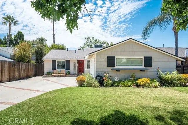 Welcome to this charming five-bedroom home nestled on a picturesque street in Valley Glen. As you step inside, you'll immediately experience a sense of coziness and warmth. The open-concept living, dining, and family areas feature high beamed ceilings that enhance the spacious feel and allow natural light to flood the space. The beautiful hardwood floors throughout are in excellent condition, while the kitchen boasts durable and stylish tile. As you settle into the living room, you'll appreciate the large brick fireplace, perfect for those chilly winter nights. The dining room offers a generous eating area, ideal for gatherings and meals with family and friends. The kitchen is equipped with a built-in wine refrigerator, microwave, and a charming garden window that brightens the space. The family room opens to a fantastic covered patio, designed for outdoor enjoyment. Here, youll find an area for dining and relaxing, complete with an outdoor TV to watch your favorite shows. The dual fireplace adds extra warmth on cooler evenings, making the patio a perfect spot for entertaining guests. The premier bedroom features a spacious walk-in closet, while a guest bedroom near the front of the home boasts its own private bathroom, ensuring comfort and convenience for visitors. This home seamlessly blends indoor and outdoor living, providing plenty of space and amenities for a comfortable and enjoyable lifestyle. The owners have upgraded the home this year with a new roof, HVAC system, and water heater. You'll love the French doors, Plantation Shutters and upgraded window coverings wit