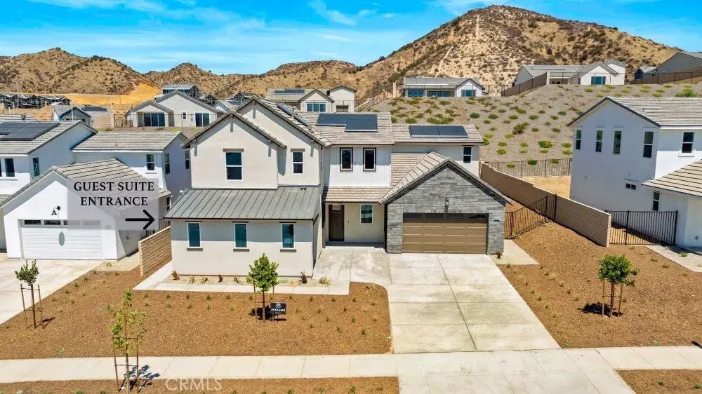 Highly upgraded quick move in home! Discover the hidden gem of Williams Ranch, where rural charm meets modern convenience. Tucked away in a serene setting, yet conveniently located just minutes from the bustling shopping and dining destinations of Valencia. Say goodbye to crowded neighborhoods and embrace the spaciousness of Williams Ranch. Enter through a picturesque operating vineyard and lush citrus orchards, accessible to homeowners and maintained by the HOA. Explore miles of scenic paseos or indulge in resort-style amenities including a junior Olympic size swimming pool, cabanas, wine pavilion, amphitheater, and clubhouse. With Lake Castaic nearby, enjoy a variety of water activities and world-class bass fishing. With 9 pocket parks scattered throughout and a large public park just outside the gates, Williams Ranch offers a lifestyle unlike any other. Orchard Plan 11 is a two-story home with 3,607 approximate square feet with 5 bedrooms and 4 bathrooms. In addition to the main living area, there is a separate living space with its own private entry, kitchen, living room, bedroom, and full bath. The main living area has an island kitchen with walk-in pantry that opens to both the dining and great room. The 2-car garage has the option of becoming a 3-car garage offering 4 covered parking spaces. A tech space is tucked away behind the kitchen and has the option of becoming a dog wash. The second level features two secondary bedrooms, a spacious bonus room, and a dedicated laundry room. The primary bedroom with the private bath and walk-in closet completes the second floor