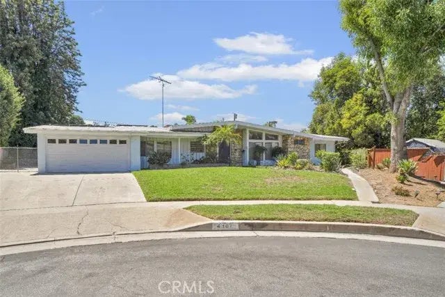Step into a piece of history with this mid-century Charles DuBois home on a quiet cul de sac, available for the first time since 1965! Nestled on a sprawling 15,824 square foot lot, this classic mid-century modern 4-bedroom, 2-bath residence offers 2,115 square feet of versatile living space, brimming with potential. Enter through the formal tiled entry which flows into the spacious living room featuring vaulted beamed ceilings and a double-sided brick fireplace. Sliding glass doors invite you to the expansive backyard, seamlessly blending indoor and outdoor living. The kitchen is spacious and has a good-sized dining area and is open to the large family room also with vaulted ceilings and sliding glass doors leading to the large, covered patio. Down the hall you will find three large secondary bedrooms, each with high ceilings. Two of these bedrooms share a convenient Jack-and-Jill 3/4 bath. The master bedroom boasts an ensuite full bath with a separate tub and shower, as well as sliding glass doors to the backyard. Outside, enjoy the best of California living with a large, covered patio, a sparkling pool, expanded side yard featuring a sizable planter box for your own home-grown herbs, fruits, and vegetables. The backyard is an entertainers dream, complete with a large, fenced sport court and a shaded grassy area. This mid-century modern home is ready for your personal touches to bring it into the 21st century. Dont miss the chance to make this unique property your own and create lasting memories in a truly special setting.