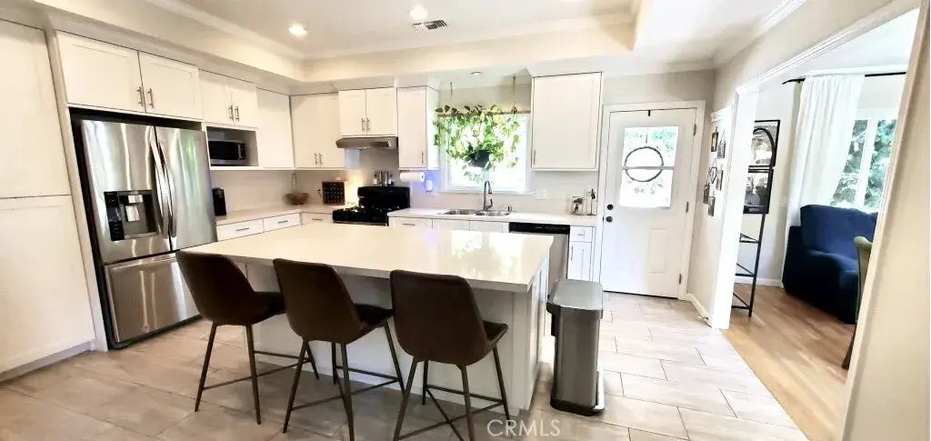 Lovingly renovated home with RV or Boat parking near the heart of Warner Center in Woodland Hills. This tranquil home will be a true sanctuary for those seeking a private and peaceful existence amidst city life. Formal entry leads you to a spacious open living room with romantic brick fireplace and view of the private backyard. Beautifully remodeled kitchen with huge center island, quartz counters, ceramic tile floors, and lots of cabinet space with soft closing doors and drawers is the perfect place for entertaining or gathering with family. The adjacent formal dining room can also be used as a sunny and bright den or home office. Large primary suite with updated bath and walk-in closet is perfect for taking a relaxing bath after a long day of work. Newly refinished hardwood floors throughout. Smooth ceilings, updated baths and kitchen, dual pane windows and doors, newer plumbing, 2 sliding glass doors, direct access to the attached garage provide extra convenience and security. Large RV parking and additional paved area can accommodate several cars. Easy access to some of the best shopping and entertainment the Valley has to offer. Close to the Village at Warner Center, the upcoming Rams training facility and arena, Concerts in the Park, movie theaters, and a short distance to sunny CA beaches. This home is truly a hidden gem; come see what it has to offer!
