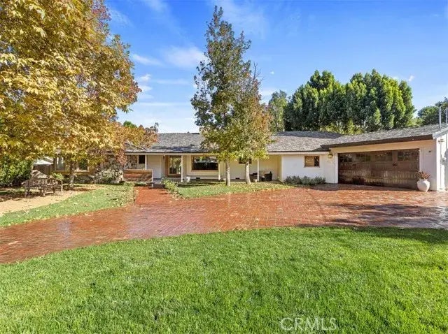 Pristine SINGLE STORY POOL home nestled on a tranquil street South of the Boulevard in the highly coveted Vista De Oro Estates! This stunning home is an entertainer's dream! As guests enter the double gates toward the circular brick driveway they are greeted by the charming curb appeal, designer lighting, wood like garage door, matte glass swivel door in white oak which opens to views of the unforgettable entertainer's yard through the light and bright family room! Boasting a sparkling zero gravity edge swimming pool, infinity spa, modern rectangular fire pit and 2 solid covered patio areas! The T&G beamed ceilings in the formal living and dining rooms make quite a statement! The chef's kitchen is incredibly functional boasting granite counters, upgraded cabinets, beautiful glass tile backsplash, stainless steel Viking appliances, oversized picture window overlooking the private front yard and warmed by the dual sided fireplace! This home offers two wings from the main living area, 3 beds and 2 baths on the East Wing with recessed lighting, double sliders off the primary retreat leading to the pool and spa and the Adjacent wing you will find an additional 2 bedrooms and 1 bath, perfect for work from home space or private in law retreat! With two car garage and an additional storage shed plus sweeping driveway and custom exterior lighting and hardscape, copper plumbing, roof and HVAC upgraded within approximately 10 years, make this a home you will keep in the family for years to come! This home is minutes from Woodland Hills Country Club and the 101 FWY, the Westchester Com