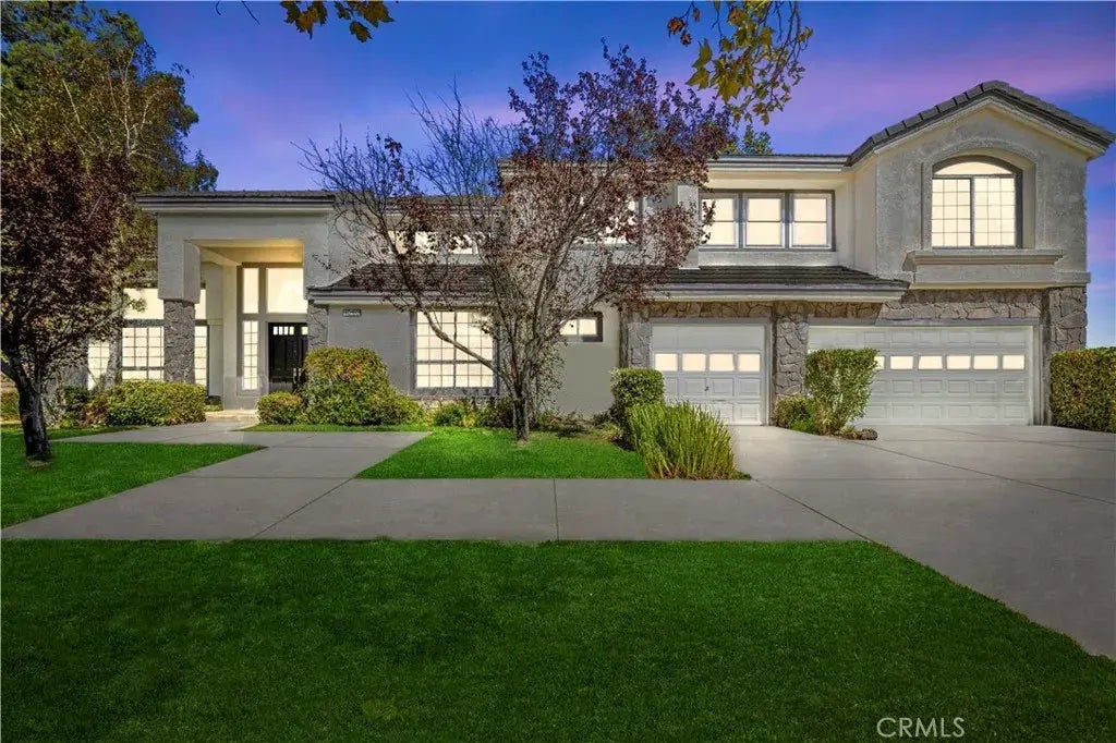 This stunning 5 bedroom, 3 car garage home sits one of the best neighborhoods of Palmdale in the Rancho Vista Area! An amazing entertainer's dream backyard. Enjoy the backyard year round with the covered patio with firepit, large grass area, and especially the water feature. Best yet, the corner lot provides extra space and privacy. The double door entry, high ceilings, and curved staircase makes a dramatic impression from the minute you enter this home. Tastefully upgraded throughout with neutral designer paint and flooring, there is nothing to do but move in and plan your housewarming party in that gorgeous backyard. With one bedroom and a full bathroom downstairs and the other 5 bedrooms open floor plan. The crisp white kitchen and family room overlook the backyard while the formal living and dining rooms offer another space to gather, entertain, or just relax. The primary suite is large with high ceilings, a cozy fireplace, bright windows, and an attached bathroom with dual sinks vanity, a soaking tub, and walk-in shower. Best yet, This home is steps from parks, schools, and shopping. It's a wonderfully walkable neighborhood and close to freeway access!