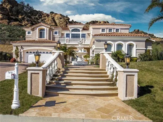 Executive Lease Listing in prestigious 24-hour guard gated neighborhood of Indian Oaks. Gorgeous Mediterranean home with beveled glass double door entry into grand foyer with double bridal staircase. Expansive, open floor plan with elegant center island kitchen with granite counter tops and stainless steel appliances. Kitchen opens to the spacious family room with fireplace. The main level of this home also includes a separate living room, formal dining room, separate office and fully equipped movie theater. Up the sweeping staircases you will find the Master Suite with sitting room, double sided fireplace, private balcony, large walk-in closet and sumptuous en-suite bath with dual vanities, jetted tub and separate shower. The 2nd floor also includes 3 additional large bedrooms, all en-suite as well as a bonus/game room. The large yard is perfect for entertaining with pool, spa, sport court and covered built-in BBQ kitchen area. This coveted neighborhood is nestled in the foothills of the Santa Susana Mountains. Beautiful views of the rugged, rocky hills surround you. These kind of homes rarely become available for lease, don't delay, it won't be around long.