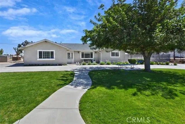 Spacious Single-Story Ranch Home with Expansive Lot and Versatile Spaces. Discover this meticulously maintained single-story ranch-style home situated on an expansive 46,464 square foot lot. Offering 3 bedrooms and 2 bathrooms within 1,762 square feet of living space, this home feels warm and inviting from the moment you step inside. The living room features a cozy fireplace that sets the perfect ambiance for relaxing evenings, while the den provides a great space to play games or binge-watch your favorite shows. This area flows seamlessly into a remodeled kitchen, complete with modern quartz countertops and a tasteful tile backsplashideal for both daily living and entertaining. The primary bedroom includes a newly remodeled en suite bathroom with dual sinks, adding convenience and a touch of luxury. The floor plan is completed with two additional well-sized bedrooms and a beautifully remodeled bathroom. Additional upgrades include copper plumbing, a new electrical panel, and a recently installed HVAC system, providing peace of mind for future owners. The property also boasts a detached office and a large workshop, perfect for a home-based business, DIY enthusiast, or craftsman seeking extra space. The well-landscaped front yard is accentuated by a circular driveway, accessible through a remote-controlled gate, and an attached two-car garage. The vast lot is well-suited for equestrian use, RV parking, or a variety of other outdoor activities, providing endless opportunities for customization. Additional amenities include recessed lighting, wood laminate flooring, and ceilin