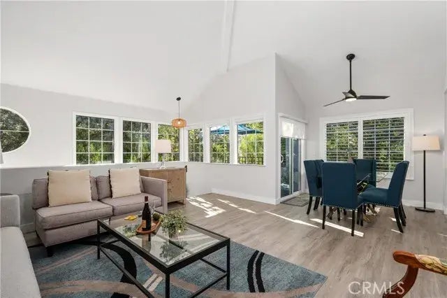 Experience the calming effect of this elegant end unit condo in the first building of the Steeplechase gated community in Calabasas! This spacious 1 bedroom, 1 bath beauty is bathed in natural light and enjoys views of the beautiful trees and surrounding foliage from the 6 large windows in the upper living area. It is also conveniently located by the clubhouse with gym and pool/spa area. All new interior doors and laundry bi-fold doors, new floors, new fan, and new paint. The primary bedroom walk in closet has a French door for added openness and visual appeal and is roomy enough to have a desk nook in the corner. The upgraded bathroom features a smart light with music pairing capabilities. The kitchen boasts quartz countertops and curated appliances that make navigating around efficient and maximizes space. Cozy up to the wood burning fireplace in the living room and enjoy the openness of the cathedral ceilings or take in the gorgeous views from the private open outdoor balcony. The attached, full size, single car, direct access garage also enhances privacy and security. Easy freeway access at Lost Hills and only a block away from upscale dining, retail and grocery shopping. This exquisite condo brings the perfect blend of tranquility and refined stylishness together. A must see for the value and experience!