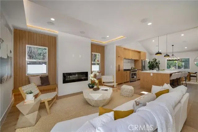 Nestled in a lovely pocket of Van Nuys, a stunning single-story home features 3 bedrooms 3 bath, plus a 2 bed 1 bath ADU with full kitchenet. The property boasts a natural and organic aesthetic that seamlessly blends with its lush surroundings. The home exudes warmth and elegance with wood details and natural lighting. As you step inside, youll be greeted by open floor with high ceilings, creating a grand & spacious ambiance. The interior design is characterized by natural tones and organic lines that add to the home's overall calming and soothing atmosphere. The open-concept living and dining area features large windows that allow natural light to fill the space, highlighting the beauty of the natural surroundings. The gourmet kitchen is equipped with state-of-the-art appliances and plenty of counter space, making it perfect for entertaining guests or preparing meals for your family. The bedrooms are generously sized, providing a comfortable and peaceful retreat for you and your loved ones. The bathrooms are designed with luxurious finishes, creating a spa-like experience. Equipped w/ smart home, solar and water reserving fixtures that make it an environmentally friendly home. The backyard is beautifully landscaped providing a serene and tranquil environment with a fire-pit area and lush grass, making it ideal for hosting outdoor gatherings with family and friends! Overall, the stunning property offers the perfect combination of luxury, comfort, and natural beauty, making it an ideal place to call home.