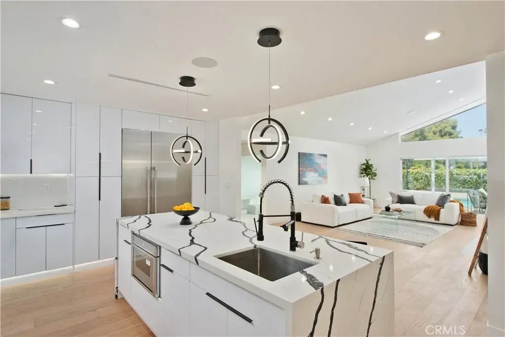 Welcome to this captivating, smart, sexy and completely remodeled single level residence. Tucked in the hills on a quiet cul-de-sac street, this magnificent home is highlighted by its grand open living spaces, vaulted ceilings and stunning designer finishes adorning every space of the home. Appointed with a spectacular chef's kitchen, anchored by its grand breakfast bar center island, waterfall countertops, custom cabinetry and culinary styled Thermador appliances. The amazing open flowing floor plan features its expansive family room with central fireplace and separate living room with mirroring walk-up bars and wall of windows overlooking the treetops, valley lights and distant mountains. Encompassing five spacious bedrooms that include its amazing master suite with direct rear yard access, oversized walk-in closet and sensational spa styled bath with dual sink vanities, elegant tile and party-sized seamless glass shower with four separate heads. Step out, relax and entertain with style in the ultra-private rear yard, highlighted by its sparkling swimmers pool with cascading deck jets, covered patio retreat, cozy firepit lounge, sports court area and fabulous outdoor kitchen with fire feature, perfect for roasting marshmallows. Outfitted with smart home features that include camera system, lighting controls, sound system and every bathroom featuring a top-of-the-line bidet toilet! Located in the Lanai School District with easy Westside access, this true masterpiece is one you will surely not want to miss!!!