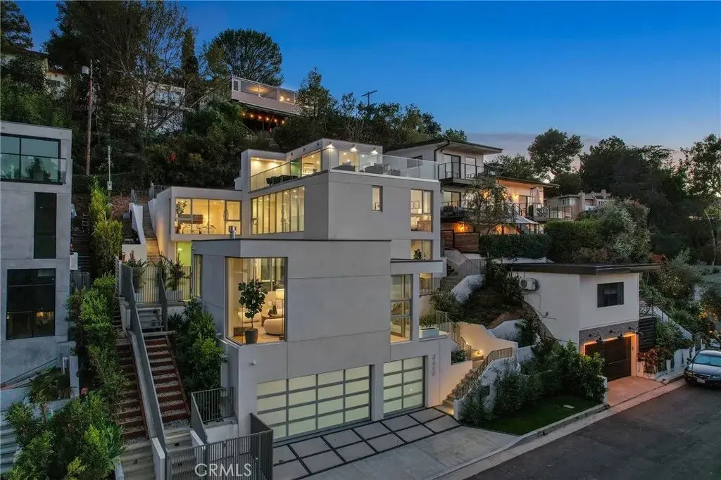 Hidden in the hills above Studio City, this modern new construction home boasts breathtaking views of the Valley. The modern exterior gives way to a warm, inviting interior filled with natural woods, imported stone and expansive walls of glass that flood the home with natural light. The open, airy floor plan is perfect for modern living, featuring a state-of-the-art chefs kitchen equipped with high-end Miele appliances, a massive island with seating and walk-in pantry. The kitchen flows seamlessly into the spacious family room, creating a perfect environment for entertaining. Designed for indoor-outdoor living, oversized sliding glass doors open to a tranquil central courtyard, where theres a sparkling pool/spa, built-in fire pit and ample patio/yard space. Completing the main living area is a formal living and dining room, and stylish powder room. Ascend the sleek floating staircase to find three generously sized ensuite bedrooms, including a stately primary suite that offers serene views, dual walk-in closets and a luxurious spa-like bathroom with a soaking tub, rainfall shower and double vanity. The upper level features a bonus room with a wet bar, full bathroom and spacious rooftop terrace with panoramic views of the Valley. Additional highlights include a lower-level ensuite bedroom, laundry room, high ceilings, smart home features like built-in speakers, a security system and three-car garage with EV charging. This is modern luxury living at its finest! Located South of the Boulevard within the award-winning Carpenter School District, this phenomenal property is just