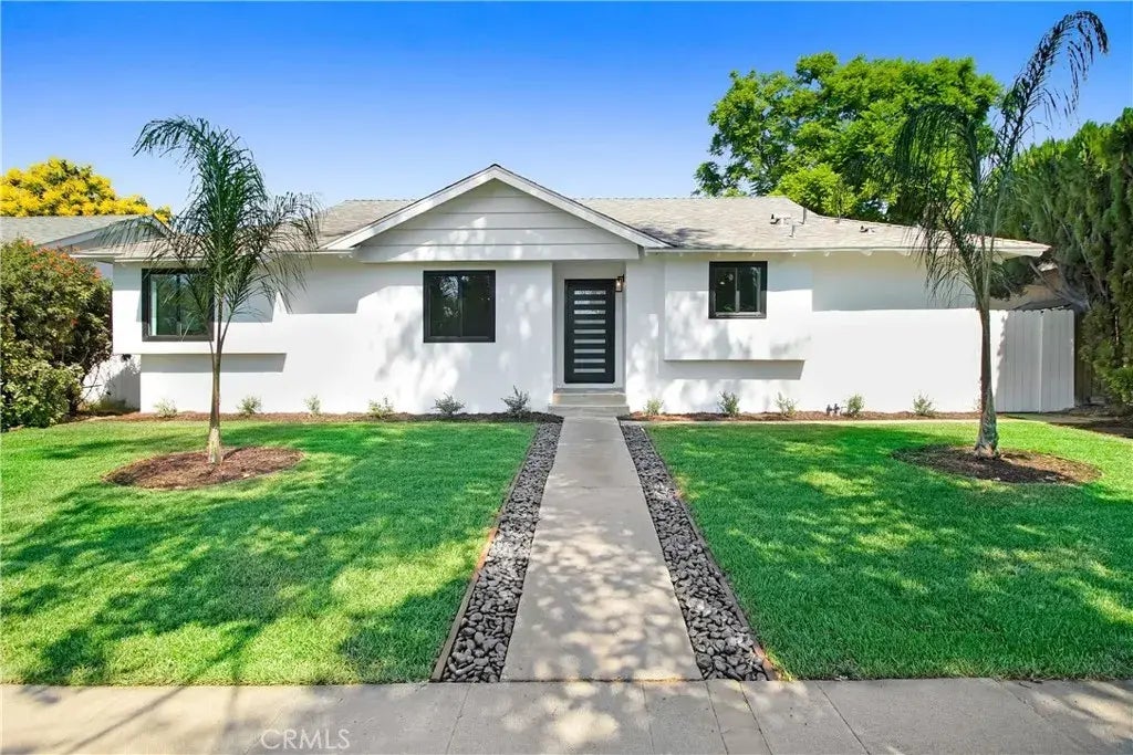 A series of high-end renovations have shaped this picture-perfect Northridge residence into the modern home of your dreams! Set on a 7,445 sq ft lot this 3 bedroom, 2 bath abode's stunning curb appeal is enhanced by a recently sodded front yard maintained by an updated irrigation system. An equally striking 1,470 sq ft interior displays freshly painted neutral tones and beautiful laminate wood flooring. Double pane, Low-E windows and modern French doors spill brilliant sunlight throughout, illuminating the living room and dining area. In the remodeled kitchen, you'll have stainless steel appliances, gorgeous shaker-style cabinetry, elegant tile backsplash, and sleek quartz countertops. Generous bedrooms and exquisitely reimagined bathrooms. Step outside the French doors and host unforgettable gatherings with family and friends on the revamped concrete covered patio overlooking the fully-fenced backyard as you relax and enjoy the refinished sparkling pool. Additional upgrades include roof, doors, windows, appliances, paint interior/exterior, plumbing, tankless water-heater, main line, 200amp panel, HVAC system, air ducts, pool equipment such as electrical, plumbing and lighting. Plus, there's a detached 2 car-garage which will offer you ADU income potential in the future. Within close proximity from schools, shops, restaurants and the Famous Porto's Bakery. Come for a tour while you still can!