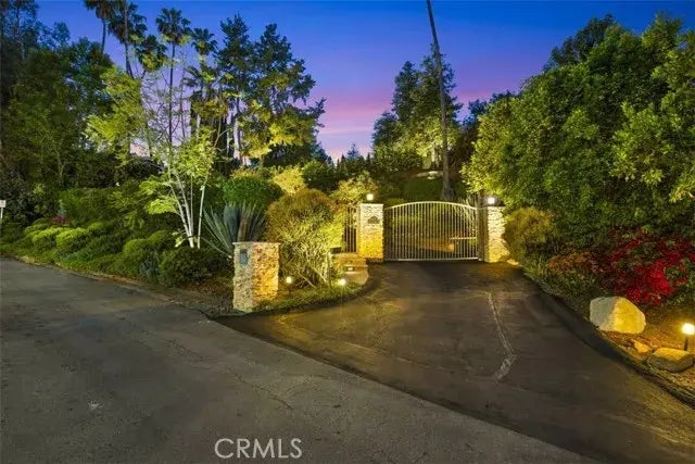 Secluded on Viviana Drive, this stunning one level Ranch and guest house is accessed by a gated private driveway. A cul-de-sac street, offering seclusion on nearly of an acre. Located in one of the most sought-after neighborhoods in Tarzana this 4-BD, 4.5-BA home is just minutes from the hustle & bustle of city life, but still tucked away in its own private enclave. Inviting entry with custom glass door opens to a majestic home that is a rare offering in todays market. A thoughtful open floor plan with sun filled living room with vaulted ceilings, built-ins, wide planked hardwood floors, fireplace with intricate stonework & an abundance of light from skylights. The living room opens to family room, dining & kitchen combination. The family room features peaceful views of the backyard, custom bar & Sub-Zero wine fridge. Light & bright kitchen with large center island with prep sink & breakfast bar, granite counter tops, freshly resurfaced cabinets, built-in stove with a VentAHood, stainless steel KitchenAid appliances, beverage fridge, skylights & an oversized walk-in pantry. On the North Wing an elegant master suite provides for an ultimate getaway with high ceilings, two walk-in closets & an eloquent master bathroom appointed with heated floors, BainUltra tub, bidet & steam shower with bench. North Wing also includes one ensuite bedroom with high ceilings & its own bathroom, a second bedroom with high ceilings, a remodeled hallway bathroom with tub & charming powder room with shabby chic finishes. The South Wing entered from the kitchen or garage features a large utility r