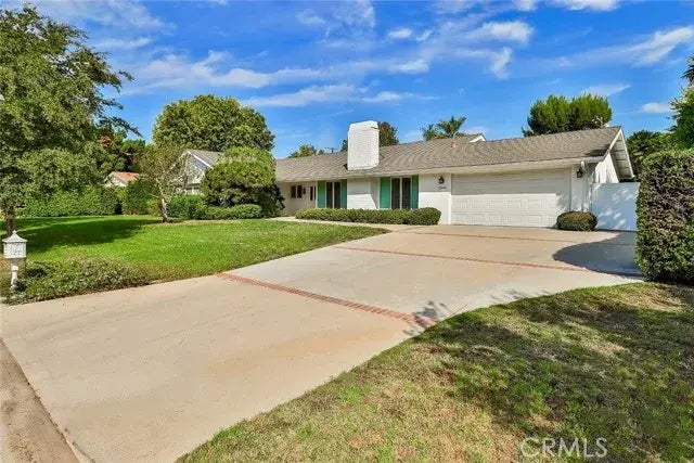 Price Improvement!! Charming single-story home with 2 car garage, 4 Bedrooms, 2.5 Bathrooms, 2,176 Sq.Ft., on a 16,464 Sq.Ft. Lot. Custom leaded glass double door entry leads you into the foyer with tile floors and step down light and bright living room with custom fire place, smooth ceilings, recessed lighting, and plantation shutters. Formal dining room with chandelier and sliding glass door out to the backyard. Kitchen with quartz countertops and custom tile backsplash, upgraded cabinets, appliances including gas stove and Whirlpool oven, built-in microwave, and dishwasher. Primary bedroom with walk-in closet, and Ensuite bathroom. Three secondary bedrooms and a hallway bathroom with tub and shower. HUGE backyard with extra-large grass area, large brick ribbon pool, and mature landscaping. Possible RV access. Potential for ADU/guest house. Located in the Granada Hills Charter High School district.