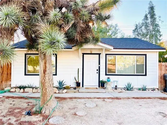 Welcome to your fully remodeled turn key dream cottage in the heart of Yucca Valley! This charming 2-bedroom, 1-bathroom home, has a new roof and is blocks from the vibrant city center. It only needs YOU to complete it. Everything has been done already! Step inside to discover an ultra charming interior featuring a remodeled kitchen and bathroom, new luxury vinyl plank floors, new double pane windows and new sliding glass doors that flood the space with natural light. Comfort is a priority here, with a HVAC mini-split system and new electrical panel ensuring you stay cozy year-round. Outside, youll find a delightful insulated he/she shed, perfect for a home office or creative space. The property boasts a welcoming circle drive, offering easy access and ample parking, all framed by stunning mountain views. A large evergreen tree provides delightful shade, while a majestic JOSHUA TREE adds character and value to your outdoor oasis. This cottage is charming beyond belief, and words can hardly do it justice. You must see it in person to fully appreciate its warmth and appeal. Dont miss this opportunitywelcome home!