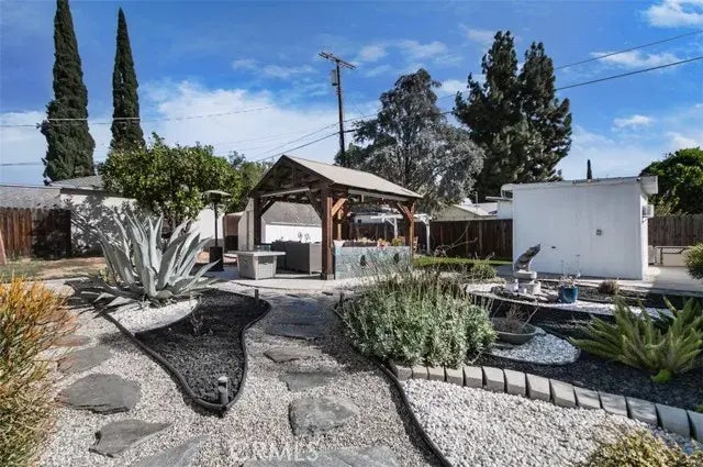 Charming Upgraded Home in the Heart of Northridge with 2 Bdrms, 2 Baths. Granite Counter Tops with Retractable Outlets. Gas Stove, Bonus Stainless Steel Refrigerator plus a Dual Zone Wine Refrigerator, Dishwasher. Stainless Steel Farmhouse Sink Features Reverse Osmosis Water Filtration & Remineralization System. Phillis Hue Recessed Lights with Remote control in Living Room. Vinyl Plank Floors in Front Rooms, Beautiful Original Hardwood Floors in Bdrms. Bonus Room & Bathroom with Walk-in Shower off Primary Bdrm (done without benefit of permits - previously a patio) Buyer to investigate. Bonus= stand alone corner wardrobe in primary bdrm. Great size lot 7802 sqft with Plenty of Room to expand the 918 Sqft House. Large Driveway that could Accommodate 4 Cars Leading to a 2 Car Garage. Tastefully Hardscaped Backyard with Lighting, with a Bonus Pergola and Patio Furniture & Propane Fireplace. 2 Great Storage Sheds (One on a concrete slab). Enclosed Laundry Closet on the Side of the House with Bonus: Washer & Dryer. Floor Heater and Window AC Convenient Location by CSUN, Close to Shopping, Restaurants & Transportation. Limited Street Parking, Requires Permits.