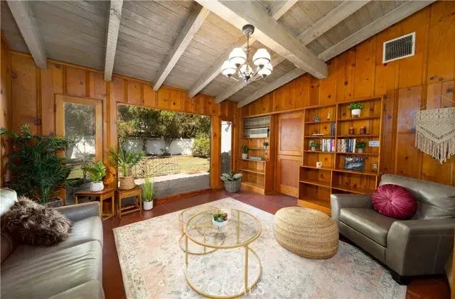 Charming 3-Bed, 2-Bath Spanish-Style Home with Sunroom, Vaulted Ceilings, and Secret Garden This beautifully updated 3-bedroom, 2-bath Spanish-style home blends timeless charm with modern amenities. The living room boasts a stunning vaulted open beam ceiling and a cozy fireplace, creating a warm and welcoming space for family and friends. The recently remodeled kitchen features quartz countertops, a high-end range, and stylish finishes that make cooking and entertaining a breeze. Enjoy the natural light streaming into the sunroom/den through the huge picture window, offering peaceful views of the lush outdoors. Step outside to explore the large, private yard, complete with secret gardens and a bonus shedperfect for extra storage or a creative workspace. With its thoughtful upgrades and beautiful outdoor spaces, this home offers a unique and comfortable retreat.
