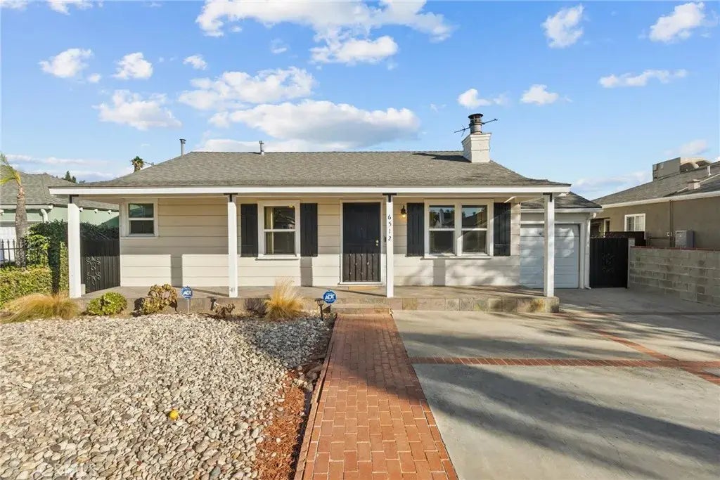Welcome to this charming gem in the heart of NoHo! Upgraded, 3+2 on a large lot featuring brand new painted interior, wood and stone tile flooring, open kitchen with granite counters, newer kitchen cabinets, newer stainless appliances, vinyl dual pane windows, 2 mini split AC/heating units, original wall/floor heater, 2 bedrooms and a huge bonus room that can be used as a large primary bedroom. Hall bath features stone tile flooring, stone wall tile in tub/shower, newer vanity, second bath features newer vanity, and tile shower, convenient indoor laundry area, copper plumbing, and attached one car garage. Step outside to large front yard featuring security fencing and gate, lovely stone tile porch, low maintenance landscaping, beautiful newer cement driveway with attractive brick inlay, newer exterior paint, newer roof, and large storage shed at end of driveway. Large low maintenance backyard features cement with brick inlay, beautiful fruit trees, lush foliage, and patio. Situated near shopping, entertainment, and public transportation!