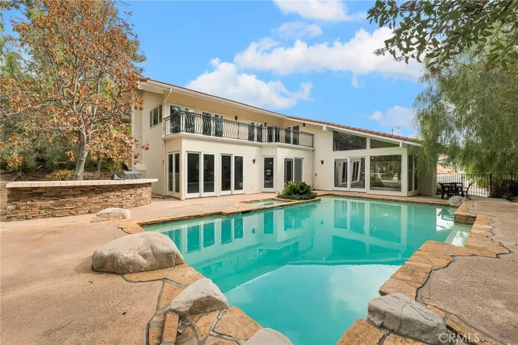 Bankruptcy Sale- Stunning location in Bell Canyon with a great development opportunity!!! Huge lot on the side, with direct access to the street, perfect for Guest House, ADU, Boat/RV parking, equestrian area or sport court. This stunning entertainer's dream home showcases an exceptional floor plan designed for both comfort and style. The grand double door entry leads into an elegant living room featuring a soaring high beamed ceiling. The kitchen, with its large center island, flows into the dining and family rooms, creating the perfect space for gatherings. Walls of glass, along with glass sliders and French doors, open up to reveal a sparkling pool and inviting outdoor entertainment area. There are beautiful hardwood floors and recessed lighting throughout. Downstairs you will find a bedroom and a full bath. Upstairs, discover a spacious loft, three additional bedrooms, and a stylish bathroom. The luxurious primary suite features a large, modern bathroom with a walk in closet attached. It also includes French doors that lead to a large balcony surrounded by trees overlooking the pool and spa. Bell Canyon community amenities include 24-hour guard-gated entry, a residents-only park, miles of maintained trails, and a community equestrian center with direct access to the Santa Monica Nature Preserve. Additional features include community tennis courts and a recently completed clubhouse with a gym. The community also hosts organized events for both adults and children throughout the year, and is part of the award-winning Las Virgenes School District, which offers school bus s