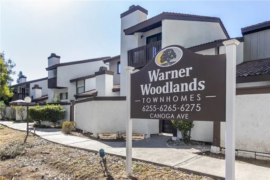 Amazing Warner Center Townhouse nestled in the heart of Woodland Hills in Warner Woodlands! Spacious end unit, 2 bedroom & 2 bathroom Townhouse with Private Patio. Wood framed opaque glass doors throughout. Designer Light Fixtures. Newer windows and sliding doors. The community features lush landscaping, babbling creeks, tennis court and close to the beautiful resort style community pool/spa. Spacious Primary Bedroom with en-suite remodeled bathroom with tub/shower. Private secondary bedroom with remodeled bathroom. Newer Laminate floors throughout main floor. Two car attached garage with laundry area. Enjoy easy access to vibrant dining, shopping and entertainment at The Village, Warner Center and Topanga Mall. NEW HVAC! HOA covers Earthquake Ins., Water & Basic Spectrum. Plus the new home of the Ram's football team.