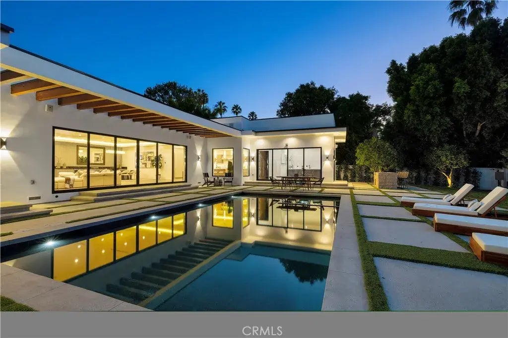 Elegant Modern Living in Encinos South of Boulevard Location! This luxurious 5-bedroom, 5.5-bath single-story home, with 3,818 sq ft of living space and a fully finished 512 sq ft garage, Totaling 4,330 SQFT in a single-story build. This beautiful home is nestled on a quiet cul-de-sac on a generous 16,000 sq ft lot. The motivated seller is eager to close swiftly, presenting a fantastic opportunity for you. High 10-foot ceilings and Western sliding doors create an open, airy flow between indoor and outdoor spaces, leading to a beautifully landscaped yard with a sparkling poolperfect for relaxation or entertaining. Inside, enjoy the warmth of engineered wood floors, a cozy gas fireplace, and a gourmet kitchen outfitted with MIELE appliances and custom European cabinetry. The master suite is a private oasis with a spa-like bathroom and his-and-her closets, while every bedroom provides ensuite baths for privacy and comfort. Located close to popular restaurants, shops, and essentials, this home is a rare gem offering modern elegance and a prime Encino lifestyle. The seller's strong motivation to sell quickly underscores the exceptional value of this property. Dont miss the chance to make this extraordinary home yours today!