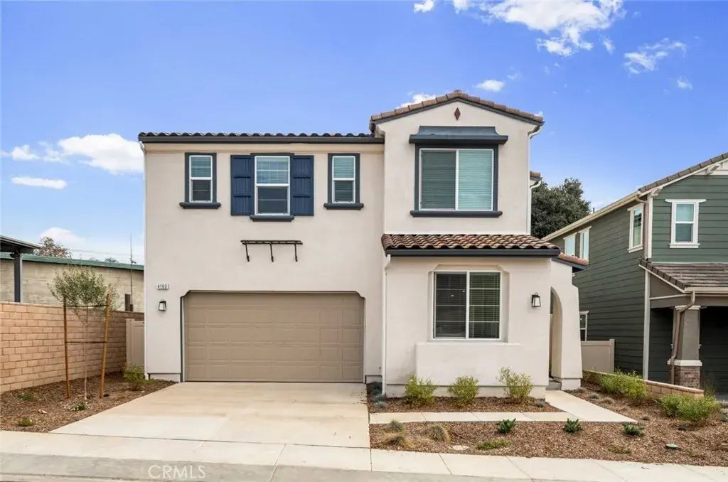 Stunning brand-new construction awaits in this energy-efficient, 2-story single-family home boasting impeccable curb appeal, lush landscaping, and a covered patio. A 2-car garage complements the 3 bedrooms and 2.5 bathrooms, featuring luxury vinyl floors throughout the open floorplan. The large great room leads to a gourmet kitchen with a massive center island, under cabinet lighting, plus luxury appliances grace the kitchen. All bedrooms are found upstairs with a loft and convenient laundry room. The primary suite is a sanctuary, showcasing a dual sink vanity, separate tub and separate shower, and a generous walk-in closet. Additionally, you will love the prewiring for flat-screen TVs and home electric vehicle charging station! This home is nestled in a great community near La Verne Towne Center, major roads and freeways, top-rated schools, universities, and an array of entertainment centers and parks.