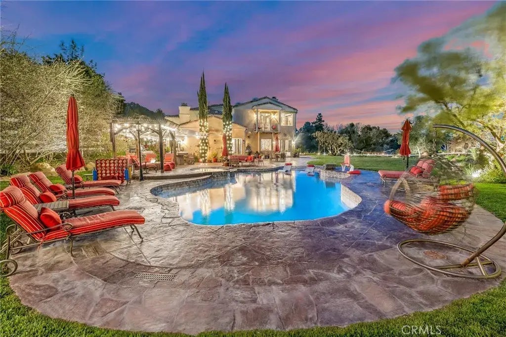 The Best Lot in Bell Canyon A Rare, Flat Acre with Breathtaking Panoramic Views and Lush Fruit Trees! Welcome to 10 Sage, a truly unique estate set on Bell Canyons most coveted lot. This fully gated estate boasts 6 bedrooms, 6 bathrooms, and 6,078 square feet of thoughtfully designed living space, situated on over an acre of sprawling flat land with stunning panoramic views of the entire San Fernando Valley, stretching all the way to Mt. Baldy. Nestled in the prestigious, 24-hour guard-gated Bell Canyon Estates, this home offers access to exclusive community amenities, including a full-service equestrian center, tennis and pickleball courts, a vibrant community center, its own BCVW fire department, private parks, scenic hiking trails, and award-winning LVUSD schools. Designed with entertainers in mind, the open floor plan is ideal for hosting large gatherings. The gourmet chefs kitchen is outfitted with Viking stainless steel appliances and Jerusalem stone countertops, while custom wallpaper and a mother-of-pearl inlay ceiling add a touch of elegance. Each of the 6 bedrooms features its own en suite bathroom, providing luxurious privacy for every guest. The estate includes three custom fireplaces, bistro lighting, and a 150-bottle wine cellar, adding to the refined ambiance. The expansive, park-like backyard features an enormous grassy area, polished flagstone, a childrens playground with a built-in zip line, a saltwater pool, a heated spa, and a built-in BBQ with a pizza oven. With bistro lighting throughout, the outdoor space is perfect for evening gatherings. Security c