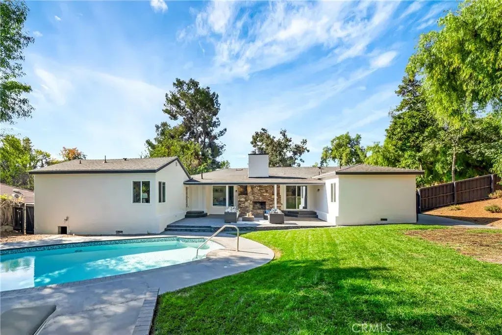 Welcome to this stunning, fully remodeled 4-bedroom, 3-bathroom home in the highly sought-after neighborhood of Woodland Hills. As you step inside, youre greeted by a bright, open-concept layout flooded with natural light and enhanced by contemporary, high-end finishes. The centerpiece of this modern home is the chefs kitchen, featuring elegant countertops, state-of-the-art appliances, and plenty of cabinetry for all your culinary needs. The spacious living and dining areas flow effortlessly through sliding glass doors to a private backyard oasis. Here, youll find a sparkling pool perfect for cooling off on warm days, along with an expansive patio area ideal for dining al fresco or entertaining guests. Surrounded by lush, mature landscaping, this outdoor retreat invites endless summer enjoyment. The luxurious master suite offers a peaceful escape with a spa-like bathroom and generous closet space, while two additional bedrooms provide flexibility for guests, a home office, or personalized spaces. Located just moments from premier shopping, dining, entertainment, and top-rated schools, this home delivers the perfect blend of style, comfort, and convenience. Dont miss your chance to experience modern living at its finest in Woodland Hills!