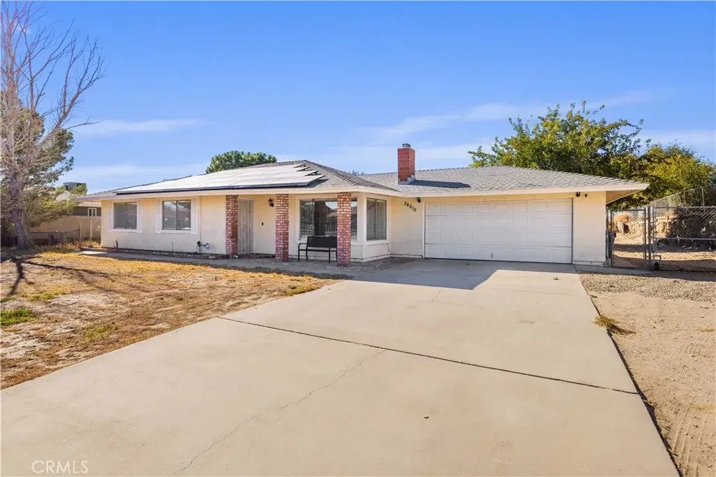 Discover this inviting property with an open floorplan and abundant natural light on almost 1 acre. This home features a cozy fireplace in the living area, a recently updated hall bathroom, and solar panels for energy efficiency. The property is fully gated, offering privacy and security, with a covered patio that overlooks expansive acreageideal for enjoying the tranquil surroundings. This home combines space, comfort, and scenic views. Don't miss out on this exceptional property! Located on the Palmdale side of Lake Los Angeles, closer to shopping centers and schools.