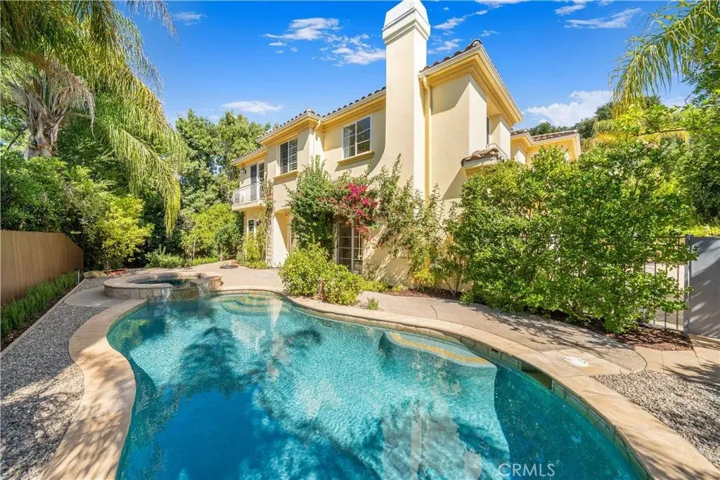Gated Calabasas Pool Home. 5 beds 6 baths plus bonus room! 4353 sqft. of thoughtfully designed living space plus park-like grounds that include an abundance of fruit trees! Breathtaking foyer with soaring ceilings, gorgeous Grand Staircase with beautifully detailed wrought-iron railings, open layout that invites natural light to fill the space. Formal Living and Dining rooms, elegantly designed Entertainer's Kitchen with gorgeous granite countertops and bar seating that opens into the family room. 3 Fireplaces in this home! Downstairs also features one bedroom with ensuite bath, a downstairs powder room and separate laundry room. 4 additionalbedrooms upstairs. Enormous Primary Suite with Huge Walk-in Closet, and an added Office/Bonus room! Each bedroom includes its own en suite bathroom. Property boasts 12 flourishing Citrus trees and one Pomegranate tree! Sparkling Pool and Spa plus lower sitting area, and gorgeous Gazebo truly add to the home's lush,natural park-likecharm and appeal. 3 Car Garage. Located within an Exclusive, small Gated community of only four homes (with NO HOA!) this property ensures added security and a sense of close-knit luxury living.Very Short Drive to ALL CALABASAS SCHOOLS. Excellent Walkability to nearby schools, shops, restaurants, and entertainment. Easy access to nearby parks, hiking trails, and the renowned amenities of Calabasas. Easy access to 101 freeway, Mulholland Hwy, and 20min drive to Malibu beaches.Schedule your private tour today! SEE LISTING VIDEO!