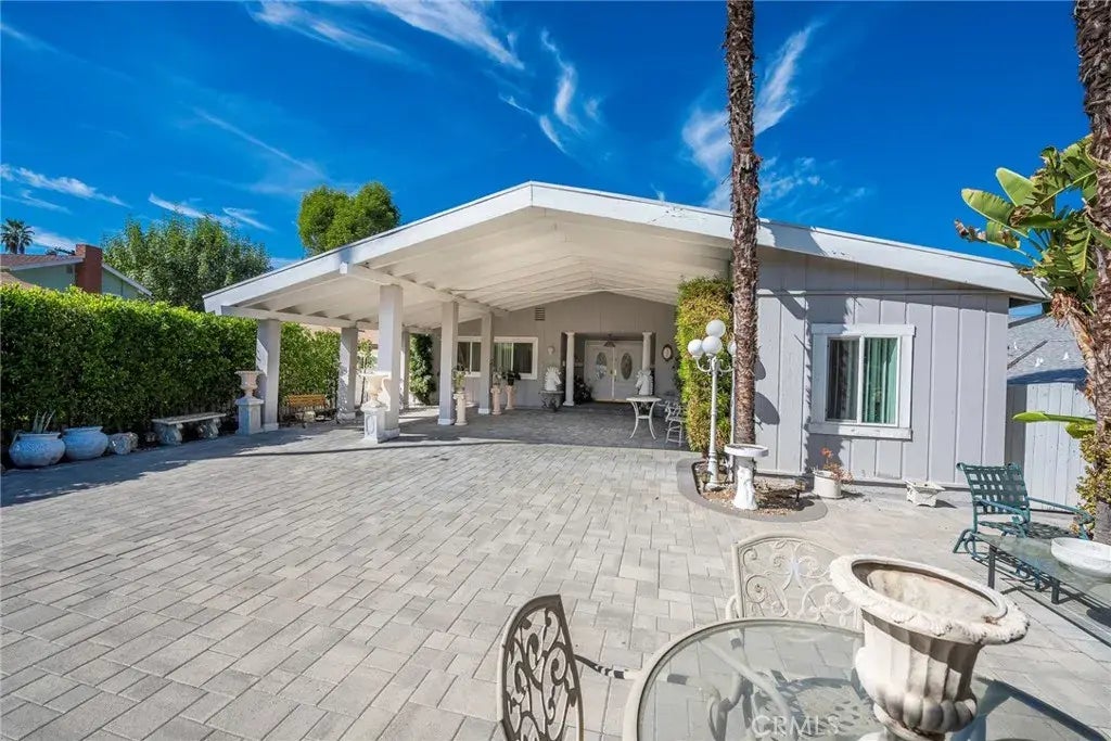 Great So. Blvd. Woodland Hills location! This large home is perfect for those who like to entertain large groups with its expansive gray locking paver covered patio area that has room for tents and lots of tables. Beautiful curb appeal with custom brick and wrought iron gated driveway entry. Versatile 3 or 4 bedroom floor plan utilizing the downstairs lg. bonus room with very large mirrored closet. Other interior rooms include a grand vaulted formal foyer entry with skylights, living room and family room set apart by a raised hearth double sided fireplace with gas starter, an open concept dine in kitchen with breakfast serving bar center island w/built in cabinets, an attached dining area with slider doors leading to a large entertainers covered balcony deck with a nice view of the surrounding hills. Off the hallway are 2 secondary bedrooms, one with a small balcony deck, & an ensuite primary bedroom with a spacious bathroom & step down walk in closet room with an exit door to the front patio. There is one large bonus room downstairs, as mentioned, with a lg. closet and door to a covered concrete patio and private yard. The house features; smooth ceilings, recessed lights, crown moldings, tile and laminate floors, central air & heat, some dbl. paned windows, dbl. sided fireplace,& a solar system that is paid off! Located in the Taft Charter High School district, convenient to shopping & dining & transportation.