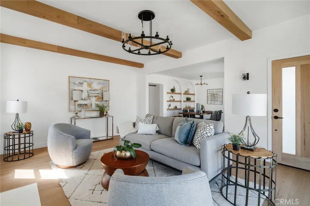 Step into this impeccably restored Spanish-style retreat, where timeless charm meets modern convenience. Situated on a corner lot in the picturesque View Heights neighborhood, this captivating 1920s bungalow offers three bedrooms and two bathrooms. Upon entering, you're greeted by intricate beamed ceilings, hardwood floors throughout and stunning windows and doorways that fill the home with natural light. The gleaming wooden floors add warmth and character throughout, creating an inviting ambiance. The newly renovated kitchen is a culinary haven with high end kitchen appliances, featuring stylish ceramic backsplash tiles, ample cabinetry, and chic lighting fixturesperfect for both function and flair. The primary bedroom serves as a peaceful retreat with its own private entrance and a beautifully tiled ensuite bathroom with Zellige-style shower tiles. Two additional spacious bedrooms share a hallway bath with exquisite tile work and modern fixtures. A major highlight of the property is the detached two-car garage, which has the potential to be used as a versatile rec room. With a separate entrance that provides access to both the garage and the yard, the space offers excellent potential for conversion into an ADU (Accessory Dwelling Unit), making it ideal for rental income. Outdoor living is just as inviting as the interior. The expansive backyard offers lush landscaping, creating a tranquil oasis for relaxation and entertainment. Enjoy dining under the pergola, lounging in the outdoor living area, or taking advantage of the grassy yard and DG pad, perfect for al fresco dini