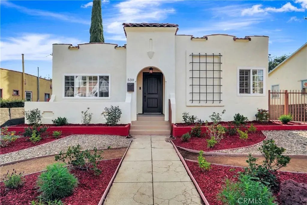 Welcome to the charming lane of Spanish Revival-style homes on Wickliffe Dr, This enchanting home welcomes you with its artistic, drought-tolerant landscaping. Plantation shutters adorn the windows, adding elegance and privacy. The light and bright living room boasts coved ceilings and offers a delightful peek-a-boo view of Mt. Wilson. A graceful arched opening leads to the formal dining room, featuring an inviting alcove perfect for lounging after meals or a built in bar. The kitchen offers custom wood cabinetry, granite countertops, including all kitchen appliances. Down the main hallway are two generously sized bedrooms and bathroom. A bonus room off the dining room, ideal as a home office or can function as a third room, opens to a serene backyard. Washer and dryer included. The outdoor space is perfect for entertaining, with a spacious covered patio. This home is a blend of charm, comfort, and style, ready to create lasting memories. Long and gated driveway leads to a quaint detached garage.