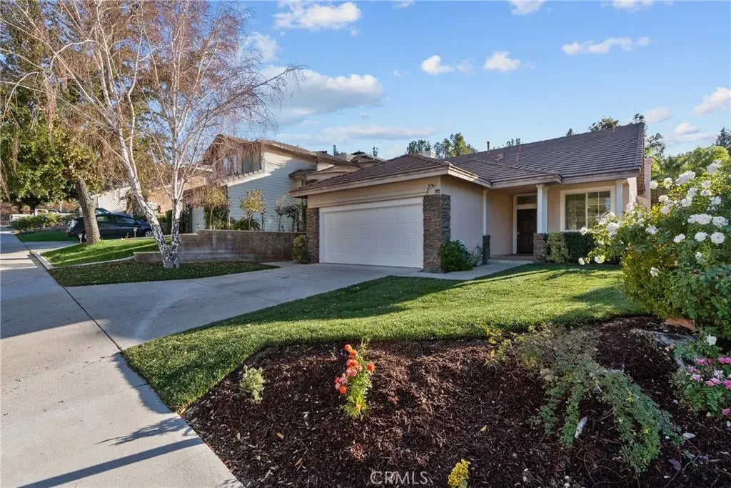 The charming curb appeal draws you in and then it only gets better! Discover this darling single story home featuring 3 bedrooms, 2 baths, and 1392 sqft of thoughtfully designed living space on a generous 7919 square foot lot. Upon entry you will find brand new luxury vinyl plank flooring throughout complimented by modern 4 inch baseboards, fresh paint and an open an inviting living concept. The kitchen boasts freshly painted white cabinets, beautiful new quartz counter tops, new stainless steel appliances, sink and faucet, new recessed lighting and garbage disposal. The family room and dining room combination offer great space, plantation shutters, new ceiling fan, stacked rock fireplace and white mantel. The primary bedroom showcases vaulted ceilings, new ceiling fan, walk in closet, sliding door that leads to your private backyard - a blank canvas ready for your personal oasis. The primary and secondary baths gleam with reglazed tub and showers, new light fixtures, plumbing fixtures, mirrors and toilets. New vanity in the hall bath and new quartz counter tops and sinks in the primary bath. The secondary rooms are sizable and have mirrored wardrobes. There is Indoor laundry, tankless water heater and freshly painted garage door. The backyard is amazing, just needs to be completed with your vision. Currently there is a large slab area with slatted patio cover, nice retaining wall and some landscaping. The question is pool or no pool, so many options. No HOA or mello roos. Situated on a cul de sac and ready to go!