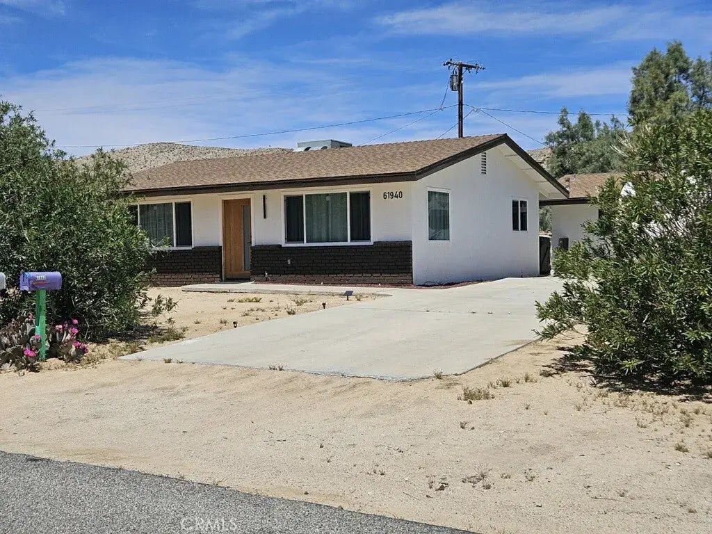 Luxurious Joshua Tree Oasis!! Central locate: This house boast two bedrooms, one bathroom Newly renovated, kitchen New recessed lighting with dimmers throughout. Beautiful new floors, and wood construction cabinets with dove-tail boxes, and soft-closing underdraw mounts. Unique custom countertops made from natural live hardwoods, and custom wood floating shelves with recessed mood lighting. A stainless-steel range hood and industrial chic ceiling light fixture with directional and spot lighting, bathroom offers a serene escape with a spacious bathtub, brass finishes, and a vanity mirror with its multi-color options and mirror defroster. New Cosmopolitan-style vanity with spacious counter. Complete with Spanish European style ceramic patterned floor tile, a large, detached garage. Perfect for an ADU or JDU, All-new paint for exterior and interior walls, argon gas-insulated double-pane windows, with central heating and cooling controlled by a smart Google Nest system. Solid white oak Japanese craftsman exterior and interior doors ensure a quieter environment, A generously fenced backyard provides space for family gatherings, star gazing, camping, and a variety of other activities. , turn the key and make it yours!