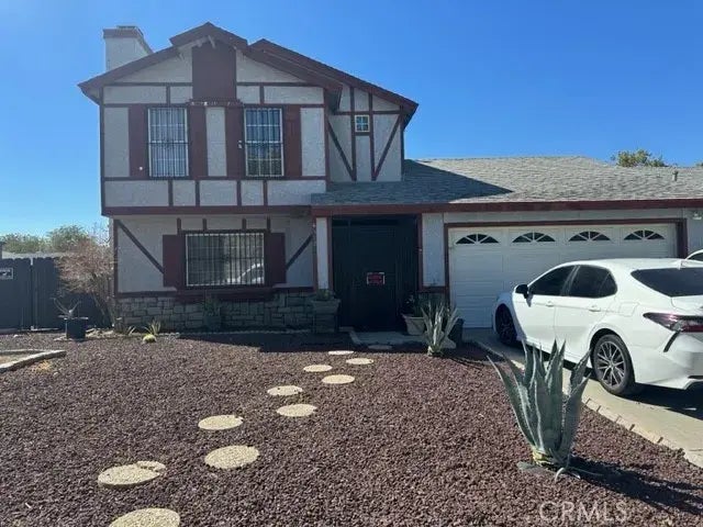 ATTENTION ALL AGENTS!!! Property qualifies for a $50,000.00 GRANT if your buyer may qualify inquire with agent. Great corner property with possibilities for RV Access. Travertine flooring great you at entrance and throughout home. Good flowing floor plan with living room and Family room combination that could easily be converted to a possible 4th bedroom. Property features a large 2 car attached garage with direct access into Kitchen area. All tree bedrooms are upstairs with master bath featuring a double sink and a walk-in-closet. Property has two sliding glass doors that lead to rear yard with a cover patio and a very large stamped concrete backyard. Property is a awesome home with very low maintenance.