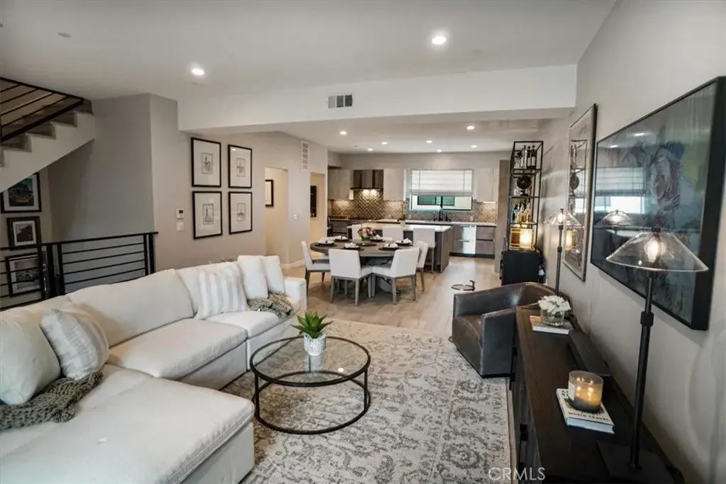 Welcome to 4718 Village Court Lane at Vantage Villas A Collection of 16 Upscale Newer Small Lot Homes in the Heart of Valley Village. This 2021 Build Multi-level Single Family Home with approx. 2400 sq ft has 4 Beds, 3.5 Baths, 3 Car Attached Garage with Epoxy Floor, Ground Level Patio, and 3 Balconies. Open Concept Kitchen with Eat-up Center Island, Quartz Counters, Two-Toned Ar-Due Italian Cabinetry with Concrete Like Skins, Spanish Tile Backsplash, and Fisher and Paykel Professional Grade Appliances including second Built-in Drawer Refrigerator/Freezer in the Center Island. Exclusive to this Home in the Community is a Custom Butlers Pantry with Quartz Counters, Glass Tile Backsplash and Prep Sink. Spacious Living and Dining Areas Off Kitchen Area as well as a Powder Room and Access to a Balcony. Primary Bedroom with Access to Another Balcony, Walk-in Closet with Custom Organizers, Barn Door for Access to Primary Bath. Sumptuous Primary Bath with Dual Sinks, Caesarstone Counters, Floating Cabinetry, Modern Soaking Tub and Frameless Glass Rainfall Shower. Two Good-Sized Secondary Bedrooms on the Same Level as the Primary (third) and One has Access to a Balcony. Hallway Bath with Floating Cabinetry, Tub/Shower Combination with Frameless Glass. The First Level of the Home is the Entry, Direct Access to the 3 Car Garage, and the Fourth Bedroom. This Bedroom has an attached Full Bath with Floating Cabinetry, Tub/Shower Combination with Frameless Glass and Access to the Downstairs Patio Perfect for Outdoor Entertaining. The Home has Mohawk Revolutionary Wide Plank Luxury Lamin