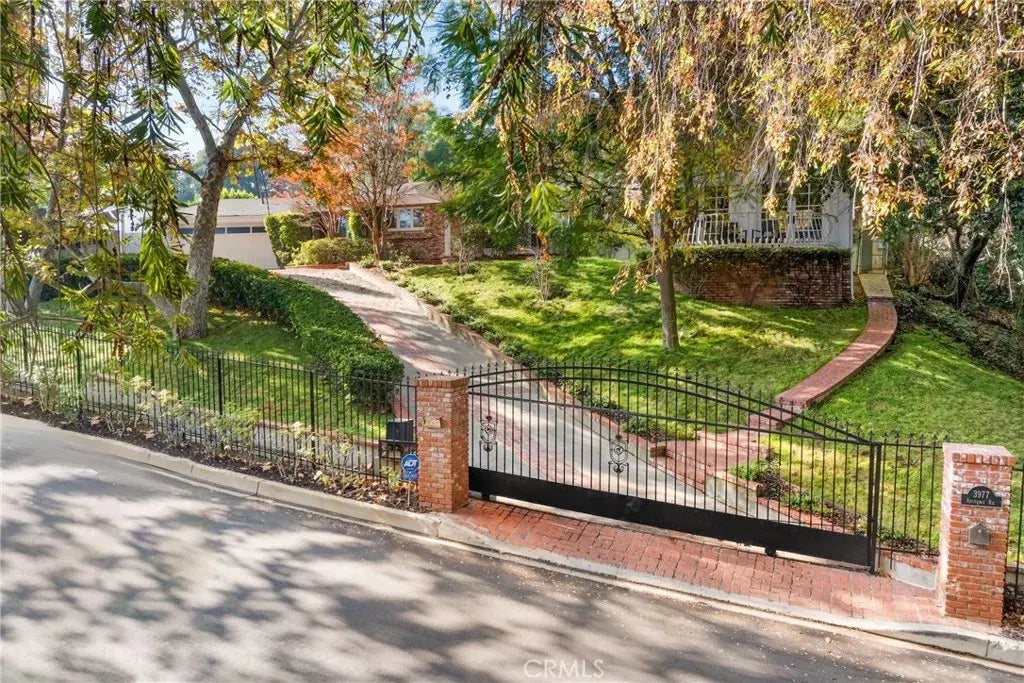 In the exclusive high demand area of Royal Oaks, Encino - serenity awaits you in this private, gated estate that's situated on a sprawling 29,000+ sf lot. Double doors welcome you into this charming single-level home, brimming with character. The spacious formal living and dining room is accentuated by vaulted wood beam ceilings with skylights and a wall of french doors that flood the space with natural light. Enjoy preparing gourmet meals in the gorgeous chef's kitchen, ideally equipped with high-end stainless steel appliances and an inviting breakfast nook. The home has four generously sized bedrooms, three of which have ensuite bathrooms, including the luxurious primary suite which features a custom walk-in closet and chic bathroom with a clawfoot soaking tub, large shower and double sinks. Surrounded by lush landscaping, the expansive backyard retreat offers a serene escape that's ideal for both relaxation and entertaining. The space consists of a sparkling pool/spa, sports court, covered patio and grassy yard. Additional highlights include an inviting family room, home office, laundry room, wine cellar, detached bonus room and gated circular driveway leading to a two car garage with an adjacent carport. This property is located South of the Boulevard in the coveted Lanai Road School District, conveniently positioned for easy access to both the Valley and Westside.