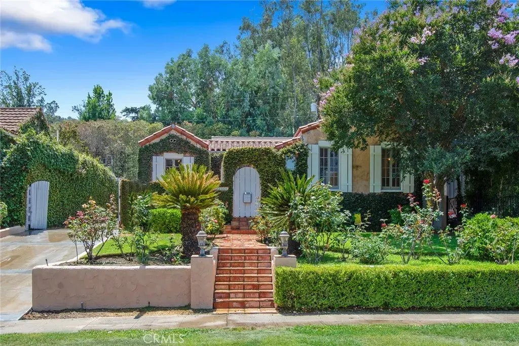Located in the coveted Silver Triangle in Studio City, this South of the Blvd. Spanish style home with 3 bed/3 bath (1543 sq. ft.) and detached 2-story Guest House/Personal Office Space/Studio is situated above street level, full of character and charm and ideally located in the Award Winning Carpenter Community Charter School District. The gated private front patio is a welcoming, tranquil setting with a tiled water fountain. The Living room includes a vaulted ceiling, hardwood floors and opens to dining area and great bonus/family room. Off the kitchen is a mud room perfect for storage and/or pantry. En-suite Master bedroom with walk-in closet opens to a spacious, outdoor terracotta tiled courtyard in the back perfect for entertaining. Detached private, two-story guest house (618 sq. ft.) with French door entrance, garage, laundry, refrigerator, great storage space and additional 4th bedroom upstairs with balcony and additional full bath perfect for a personal office, studio, or in-laws retreat. This home is close to shops, restaurants, Fryman Canyon.