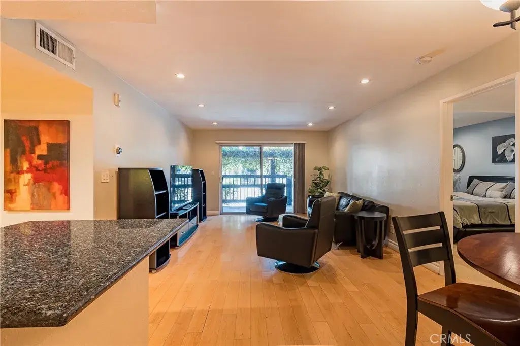 Tranquil Condo Living in Woodland Hills (near Topanga Canyon): Escape the ordinary and embrace a lifestyle of comfort, convenience, and California sunshine in this stunning 2-bedroom 2-bathroom Woodland Hills condo! Nestled in a vibrant community, the perfect blend of modern living and amenities, all within reach of the area's best shopping, dining, and entertainment. Commuting is a breeze with easy access to major freeways. There are two assigned parking spaces and ample guest parking. *Step Inside and Be Captivated: Sunlight streams through large windows illuminating the open and airy living spaces. Hardwood floors, granite countertops, recessed lighting offers inviting ambiance. Included smart thermostat with central air and heating keeps everyone comfortable year round. Come outside and enjoy the perfect location for lounging or entertaining guests on your vine-covered patio overlooking the sparkling community pool. Easy access to the pool/spa/gym directly from the patio gate. *A Delight for Cooking: The kitchen is well-equipped, featuring sleek granite bar-height countertops, modern stainless-steel range, and ample cabinet space with under cabinet lighting. *Rest and Relaxation: Retreat to your serene primary bedroom with soft natural light and plenty of room for a king-sized bed. The connected bathroom includes generous counter space and decorative fixtures. Massive vanity mirror. A spacious walk-in closet offers abundant storage, and an additional closet for even more storage. *The versatile second bedroom/office offers 2 mirrored closets and has its own connected ba