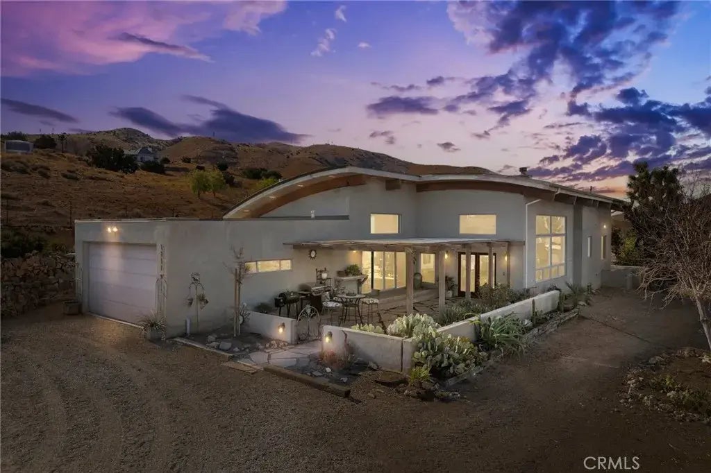 A one of a kind property. Designed & built an Architect who worked on design of the Getty Museum Expansion. 2184 Sq ft, 2 Bedrooms, 2 full baths. Large walk in closet in primary with pull down attic access offering further storage. Home is very private with 17.5 Acres, fenced with Automatic Gate. Expansive panoramic view of Antelope Valley. Expansive window in great room overlooking most of the Greater Antelope Valley and beyond.. Open concept design is absolutely perfect for entertaining. Soaring 23 ft curved beamed ceiling in living room and 20 ft ceiling in dining room and kitchen. Brazilian granite counters in kitchen with oversized 8ft granite island with prep sink. Wood framed covered courtyard with spectacular fountain. Arizona flagstone courtyard flows into the open concept living room, dining room and kitchen. Original to the house and prior to the massive expansion is original thin slat hardwood flooring in hallway and bedrooms. Wood Burning Fireplace in great room. Standing seam curved lifetime metal roof with patina that changes with sun from green to copper. Interior Fire Sprinkler System, including Garage. Utility Room w/cabinets, counter & sink, plumbed for gas or electric dryer. Attached two car Garage is insulated and drywalled. Several Shed Storage Sheds. Horse ready and room for even more. Bring your RV's too!. Plenty of space to park. Excellent well per seller with newer motor. Newer Septic and newer HVAC. Acton/Agua Dulce School District with bus service available. Come for a visit. Stay for a lifetime. Welcome Home!