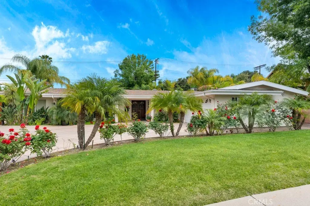 This beautifully remodeled, fully furnished, spacious one-story Woodland Hills home is nestled in a cul-de-sac with 4 Bedrooms and 3 Bathrooms and is being offered as a furnished lease - including utilities/wifi. This home has been freshly repainted in a lovely shade of white. Enter this bright and sunny home to a beautifully tiled entrance leading into the open concept living room and dining room fit to entertain a crowd. The Dining Room flows into the large chef's Kitchen which has high-end stainless appliances, quartz counters and a expansive island with seating and plenty of workspace. The Family Room is conveniently open to the Kitchen and has a lovely patio seating area just outside. The lush backyard has a sparkling Pool with a 'beach entry' and Spa, covered outdoor Entertainment area with TV, outdoor Kitchen and dining. The spacious Primary Bedroom opens onto a spectacular view of the pool and boasts a remodeled Primary Bathroom with double vanity, glassed in shower and a spectacular built-in closet organizer. The other Bathrooms are all remodeled with beautiful tile-work. Plenty of parking with the attached 2-car garage and large driveway. Welcome home to this little piece of paradise that is a short distance to the beach, PCH, easy frwy access & close proximity to Warner Center,The Village w/fine dining/shopping & highly desirable award-winning schools. Available March 1 or sooner.