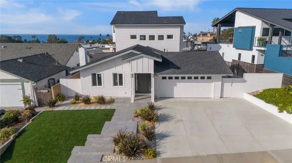 Coastal, Refreshing, Panoramic Ocean and Sunset Views! Located in Capistrano Beach, this home offers vibrant landscaping and iconic palm trees. Boasting 4 bedrooms, 3 full baths, and 2 half baths, the home is a perfect blend of modern elegance and coastal charm. The living room exudes sophistication with light wood floors, a stunning fireplace as the focal point, soaring ceilings, and large windows that flood the space with natural light ideal for both relaxing and entertaining. The kitchen is a modern masterpiece, featuring an oversized island with a sleek quartz countertop and soft gray base, white cabinetry, brass hardware, and a subway tile backsplash, combining functionality with timeless style. One of the two main-floor bedrooms opens to a private outdoor space with a lush lawn, creating a bright and airy atmosphere, complete with walk-in closets and serene views. 2nd floor primary bedroom with expansive views. Sitting/ Family area with the half bath. 3rd floor loft bedroom with a huge wrap around deck for gatherings. The bottom-floor bathrooms feature elegant designs with glossy dark tiles and pebble-textured floors, exuding style and comfort. Capistrano Beach, often called "Capo Beach" is a hidden gem along southern California coastline. Close proximity to parks, Dana Point Harbor, boutique shops and fine dining.